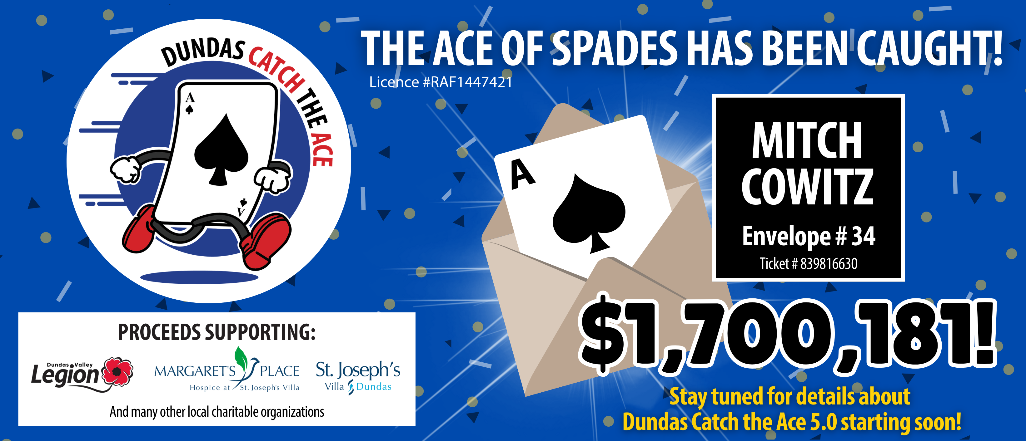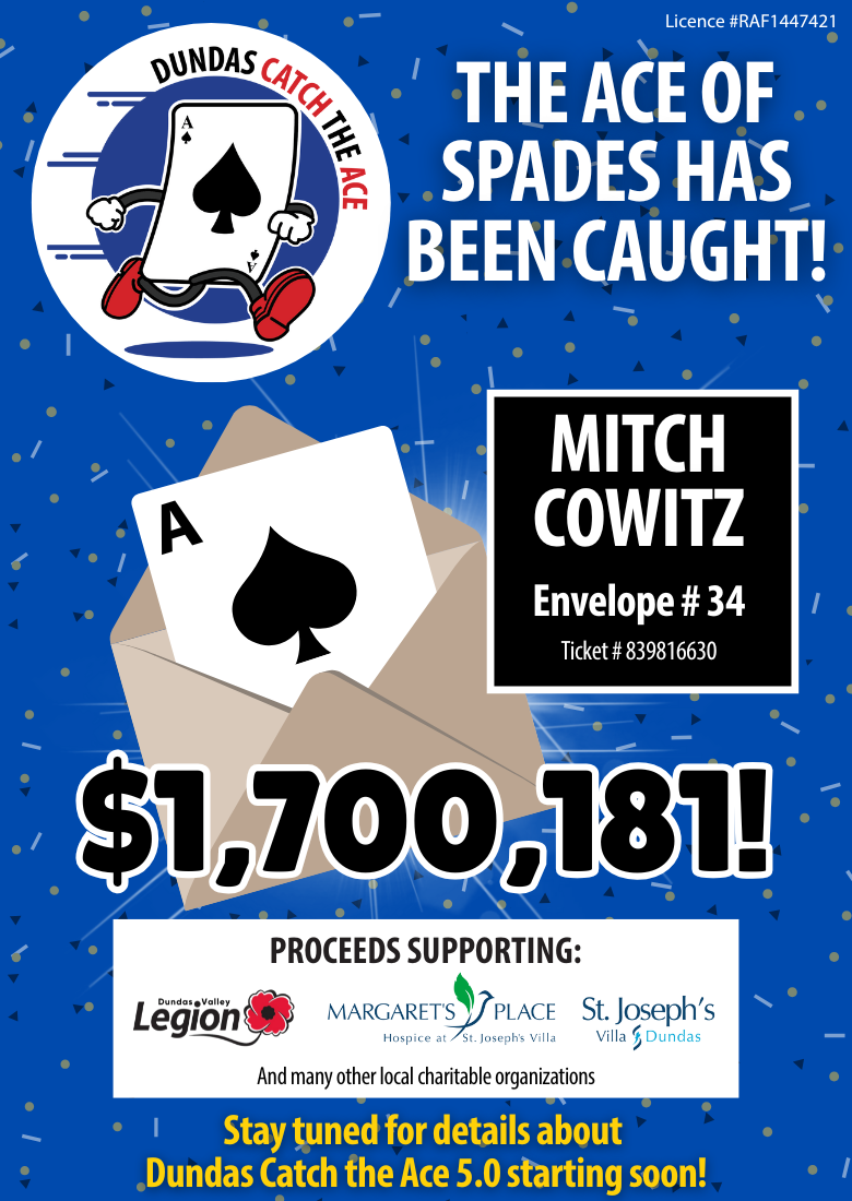 The Royal Canadian Legion Branch 36 is the AGCO Raffle License holder for the Dundas Catch The Ace Progressive Lottery.